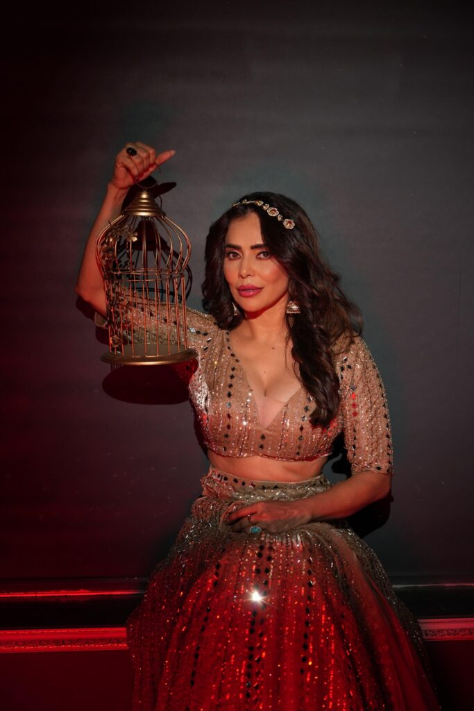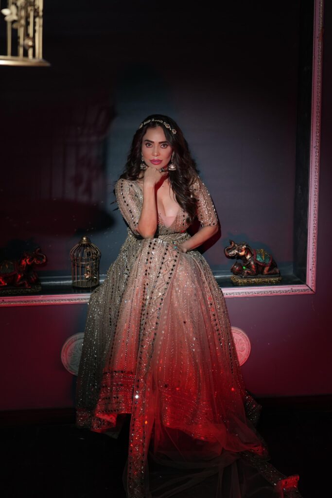But beyond the glitter, it was the human element of her look that drew attention. Nikita carried herself with a quiet confidence, blending grace with strength. Surrounded by dramatic décor and warm lighting, her presence radiated a mix of poise and power.