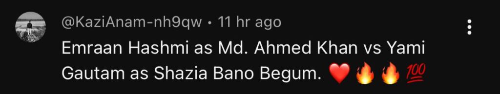 A comment read, “Hope this movie reaches out to every Indian Muslim woman for whom Bano has fought day and night and Muslim women are not alone, the Indian constitution is with them till their last breath,” and another user set it directly, “I think Indian cinema is back with bangers.” One user wrote, “Kudos to Emraan Hashmi for taking this subject. Being a Muslim, it was a landmark judgement. People calling this a propaganda film should be ashamed of themselves. Kudos to the makers, Yami Gautam and the entire team,” and another joined, “Not only Indian but every Muslim man should watch this movie…will be a landmark in Indian cinema.”