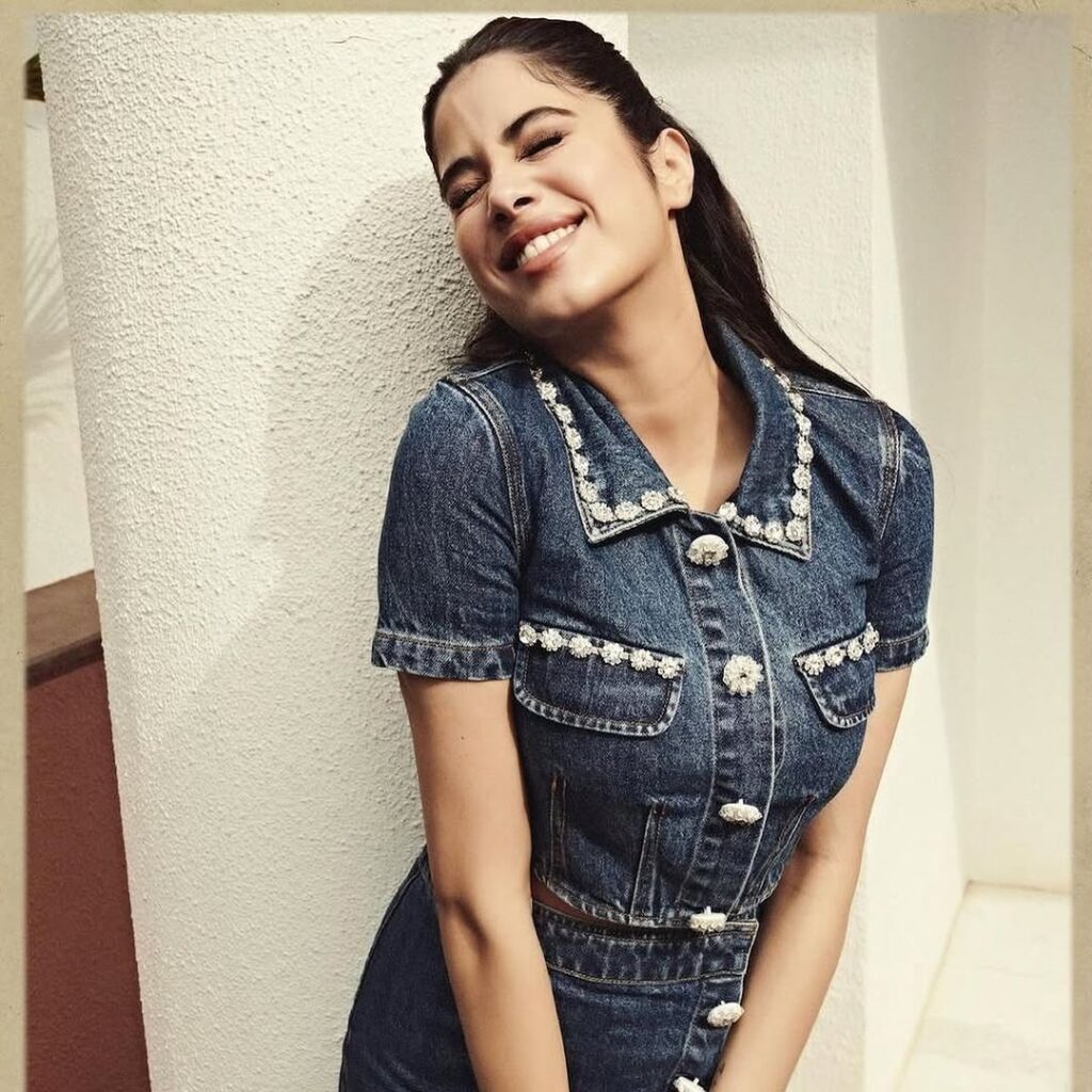Janhvi Kapoor: Janhvi Kapoor keeps it sweet and floral-y by donning a denim on denim outfit featuring a string of floral details on the lines of the borders and pockets, highlighting the borders.
