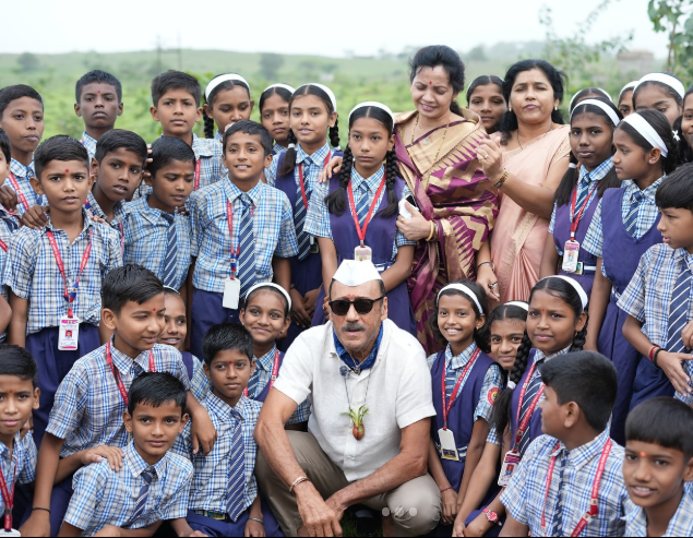 Jackie Shroff put up a powerful step towards environment conversation all over again by joining a 1000-tree plantation drive in Lonikand village. He collaborated with Dr.Ellie Organics, a clean beauty brand rooted in sustainability, and the Thinksharp Foundation to lay the foundation of Lonikand Biodiversity Park in Lonikand village.