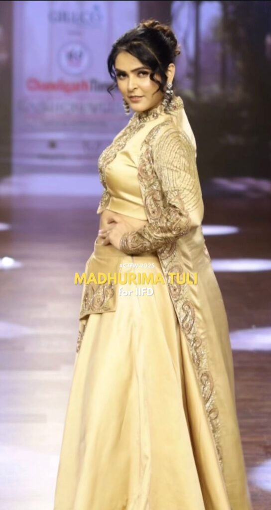Stepping into the limelight with effortless charisma, Madhurima Tuli radiated regal poise as the distinguished showstopper for IIFD Chandigarh at Chandigarh Times Fashion Week 2025. Her presence was the epitome of grace and sophistication, a perfect marriage of timeless elegance and modern allure.