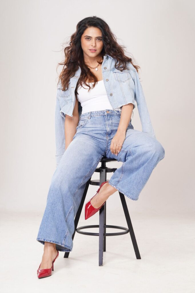 Madhurima Tuli is once again making waves in the fashion space with her effortlessly stylish appearance in a recent photoshoot. Known for her strong on-screen presence and equally magnetic sense of style, the actress gave the classic denim-on-denim trend a refreshing and modern twist. Her look perfectly blended sophistication with ease, proving that when styled right, even timeless staples like denim can make a powerful statement.