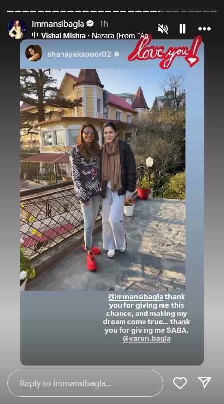 Sharing a photo clicked against a bright sunny day, Shanaya Kapoor wrote, “@immansibagla thank you for giving me this chance, and making my dream come true…thank you for giving me SABA. @varun.bagla.” Reacting to this warm gesture, Mansi Bagla reshared the expression on her Instagram story and attached it with a “love you” avatar!